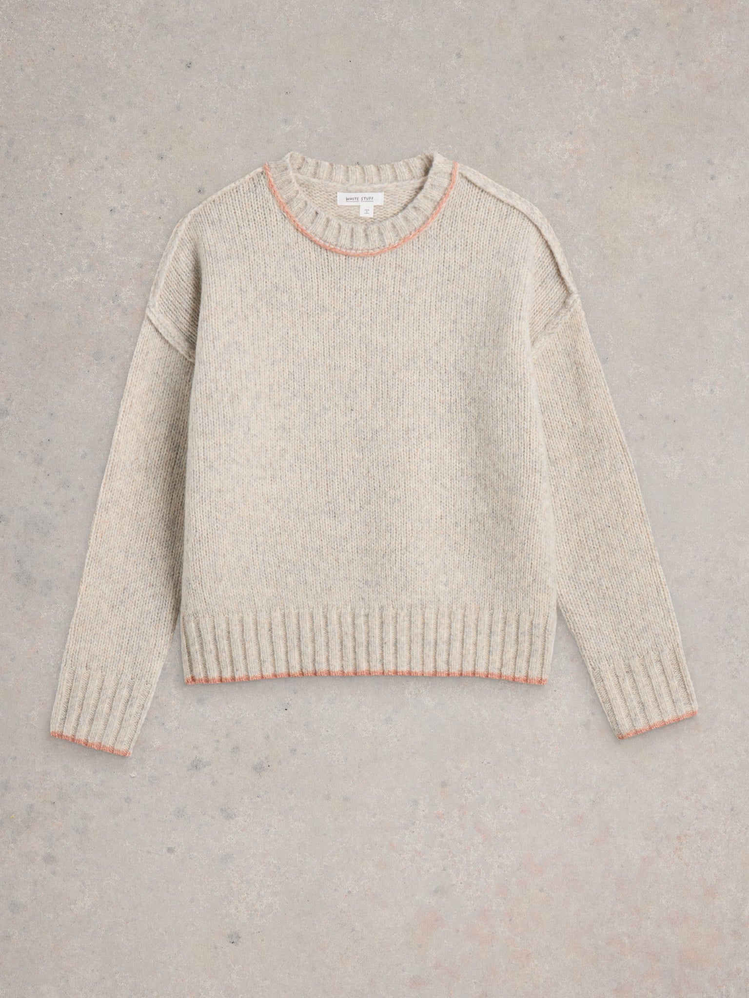 A soft, earthy-toned knit with contrast trims. Layer over dresses. Or jeans. (Or both, if it's very chilly.)