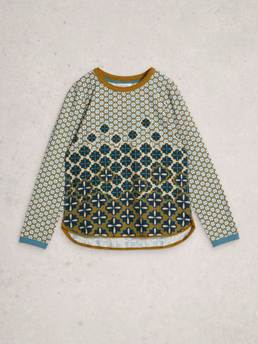 Clara Cotton Long Sleeve Top - Chartreuse Print