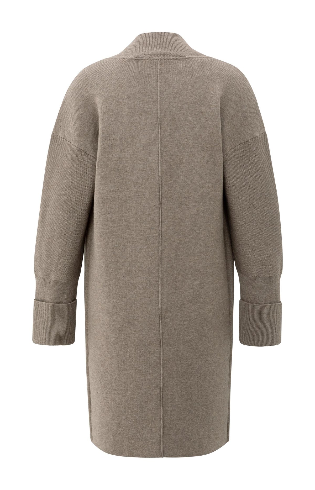 This stylish coatigan blends the structure of a coat with the comfort of a cardigan. Designed with long sleeves, a regular fit, and wide ribbed cuffs, it features an open front and large patch pockets for a relaxed look. Made from a soft knit fabric, its perfect for layering through the seasons. The model is 175 cm and wears size S.