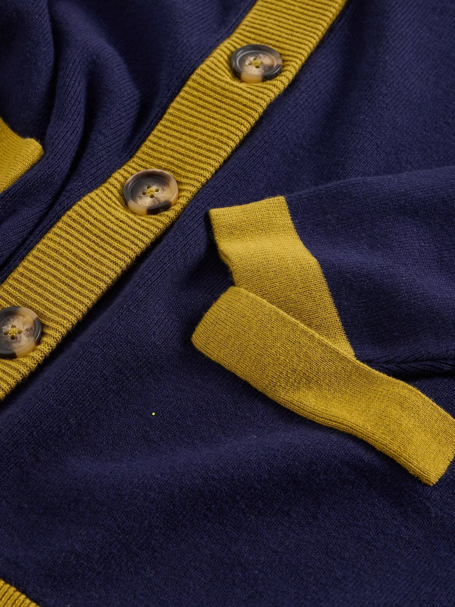 This is a smart choice. 100% organic cotton. Classic cardigan shape. With cute, fake pockets and contrast tipping that give it a polished look. It’s like your cardi just got a promotion.