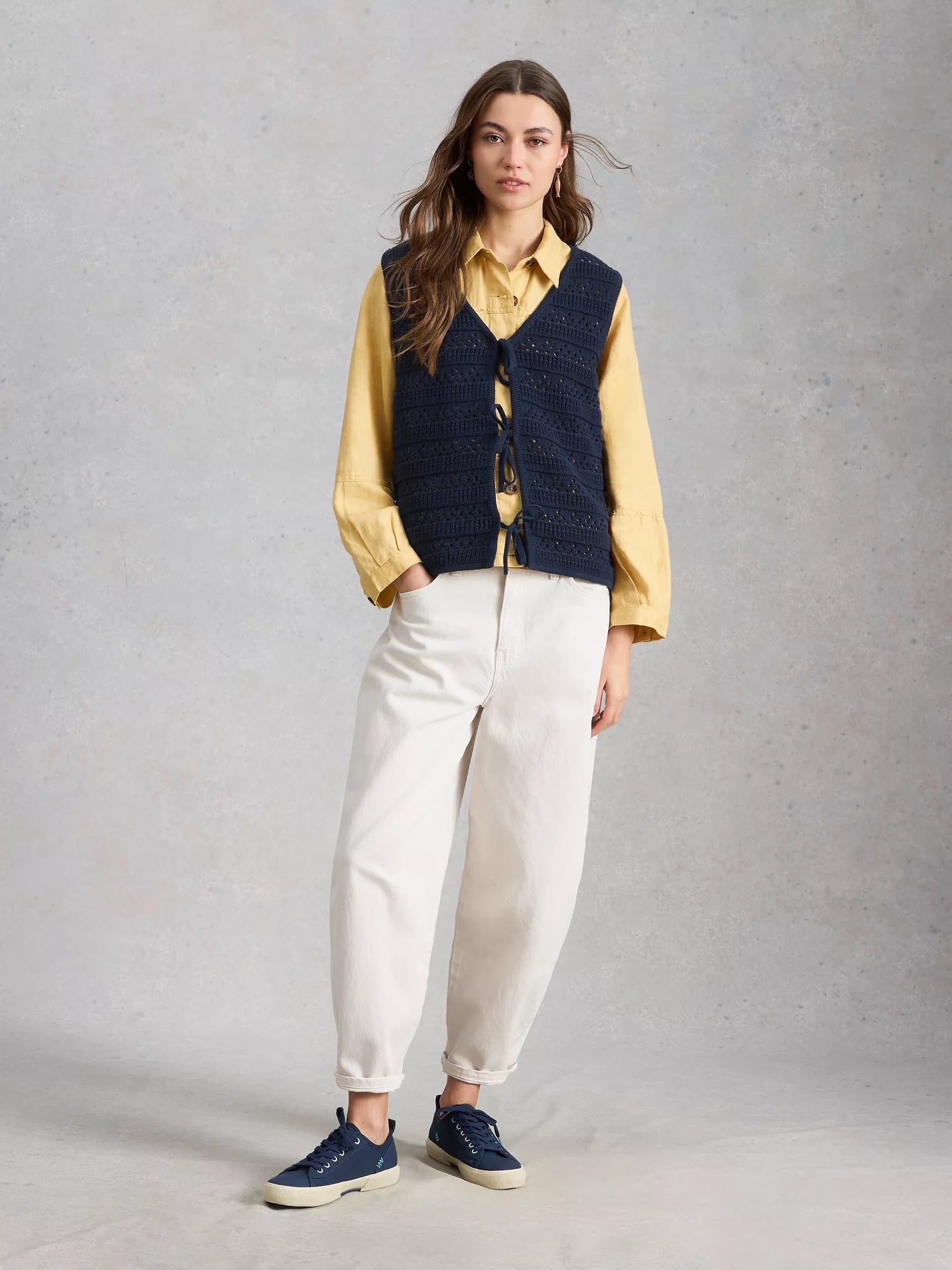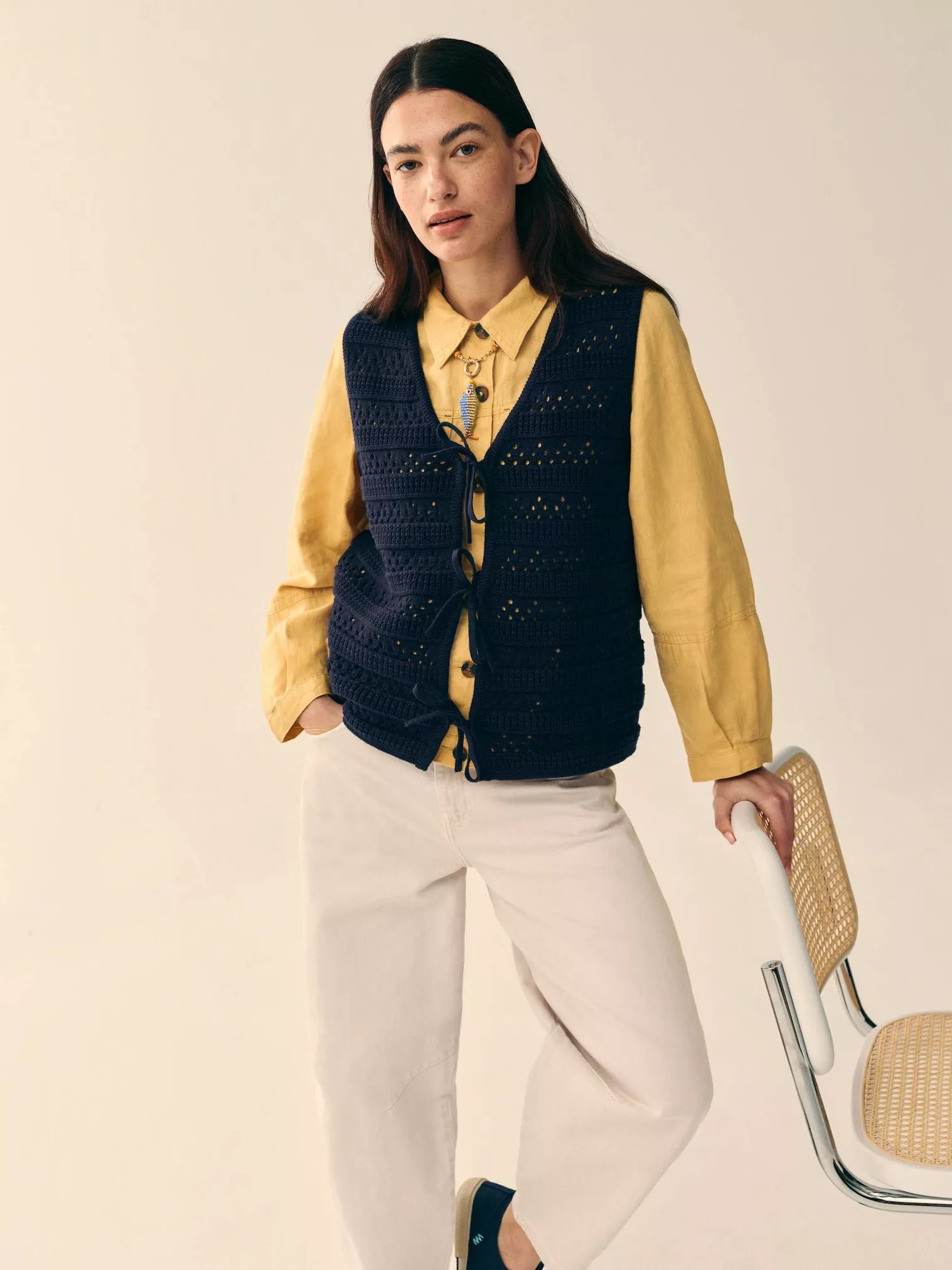 Outfit just needs a little something? Allow us. That little something might just be this cool, crochet-style vest. It’s made with 100% organic cotton. Perfect for layering over plain tees and tanks.
