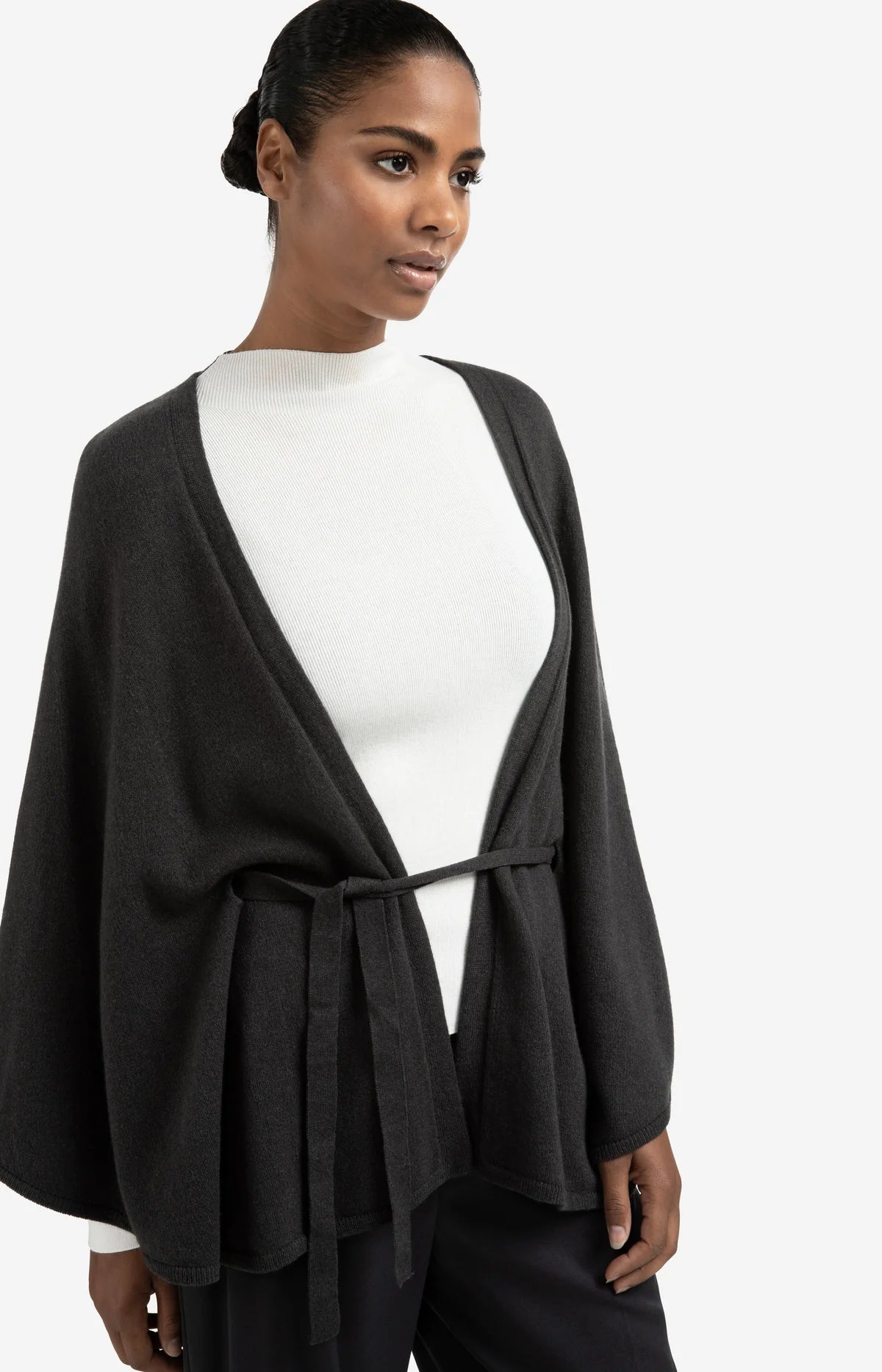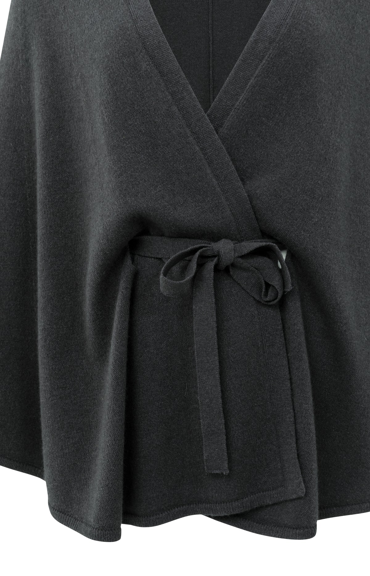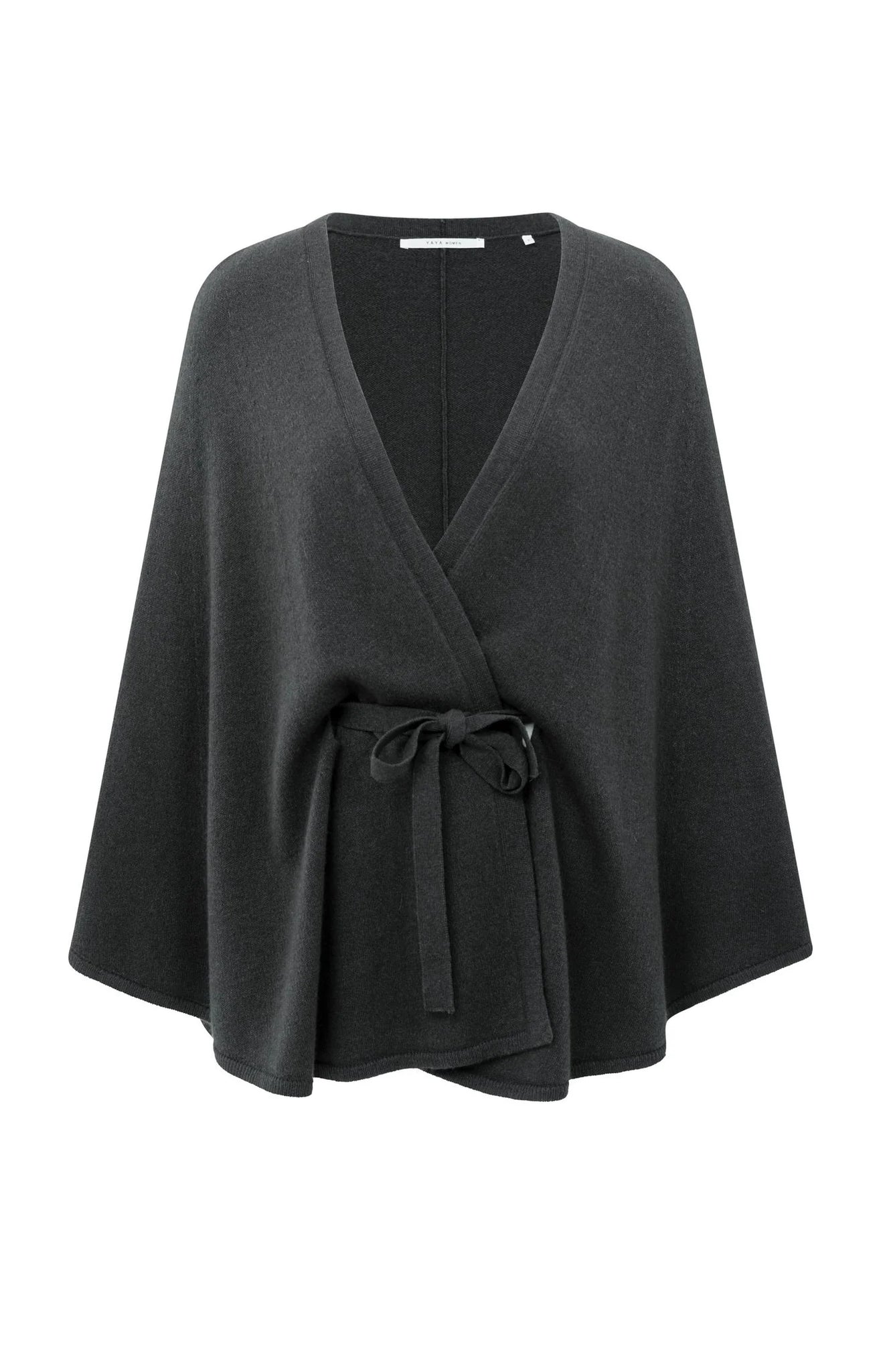 This elegant poncho is crafted from a soft knitted fabric and features an open silhouette with a deep V-neckline. The matching tie belt at the waist adds a feminine shape. Designed with a flowing fit for ultimate comfort and ease of movement. A stylish piece perfect for layered looks. The model is 175 cm and wears size 2.