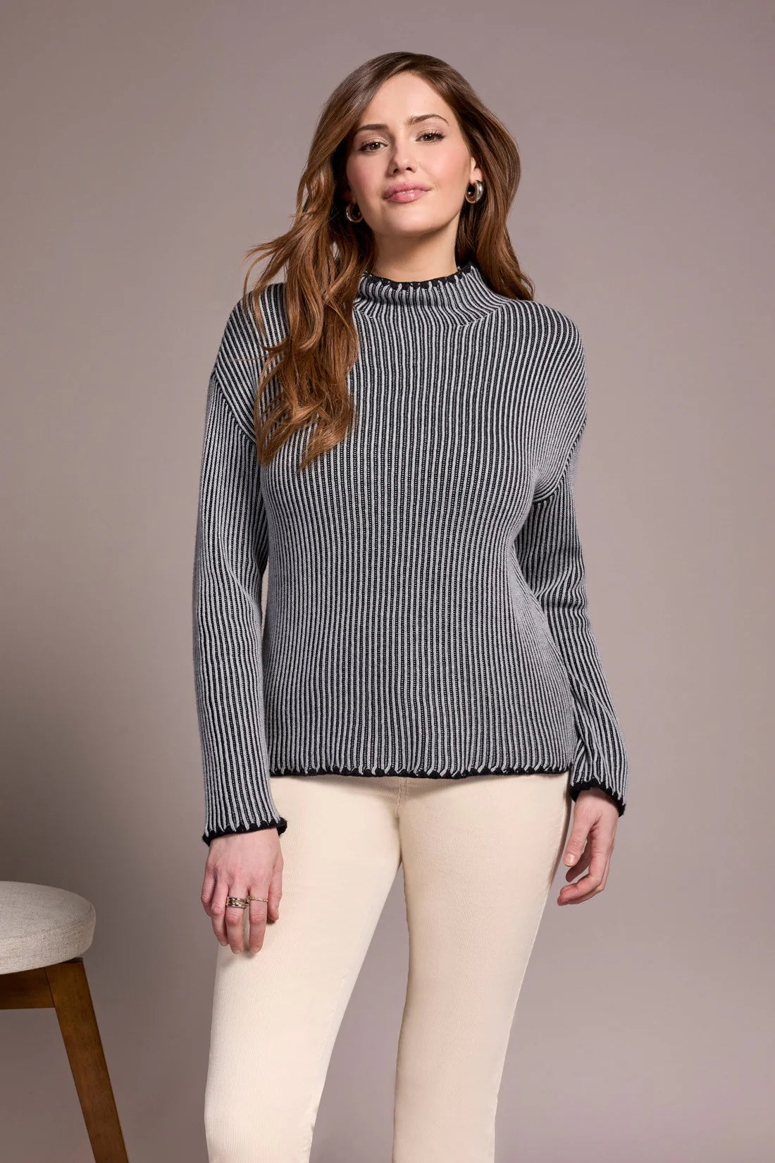 Wrap yourself in warmth with this effortlessly cozy sweater, perfect for crisp days. The funnel neckline and long sleeves offer a snug, stylish fit, while two-toned ribbing adds a unique touch of texture. Crafted from combed cotton, it feels irresistibly soft and remains comfortably breathable all day long