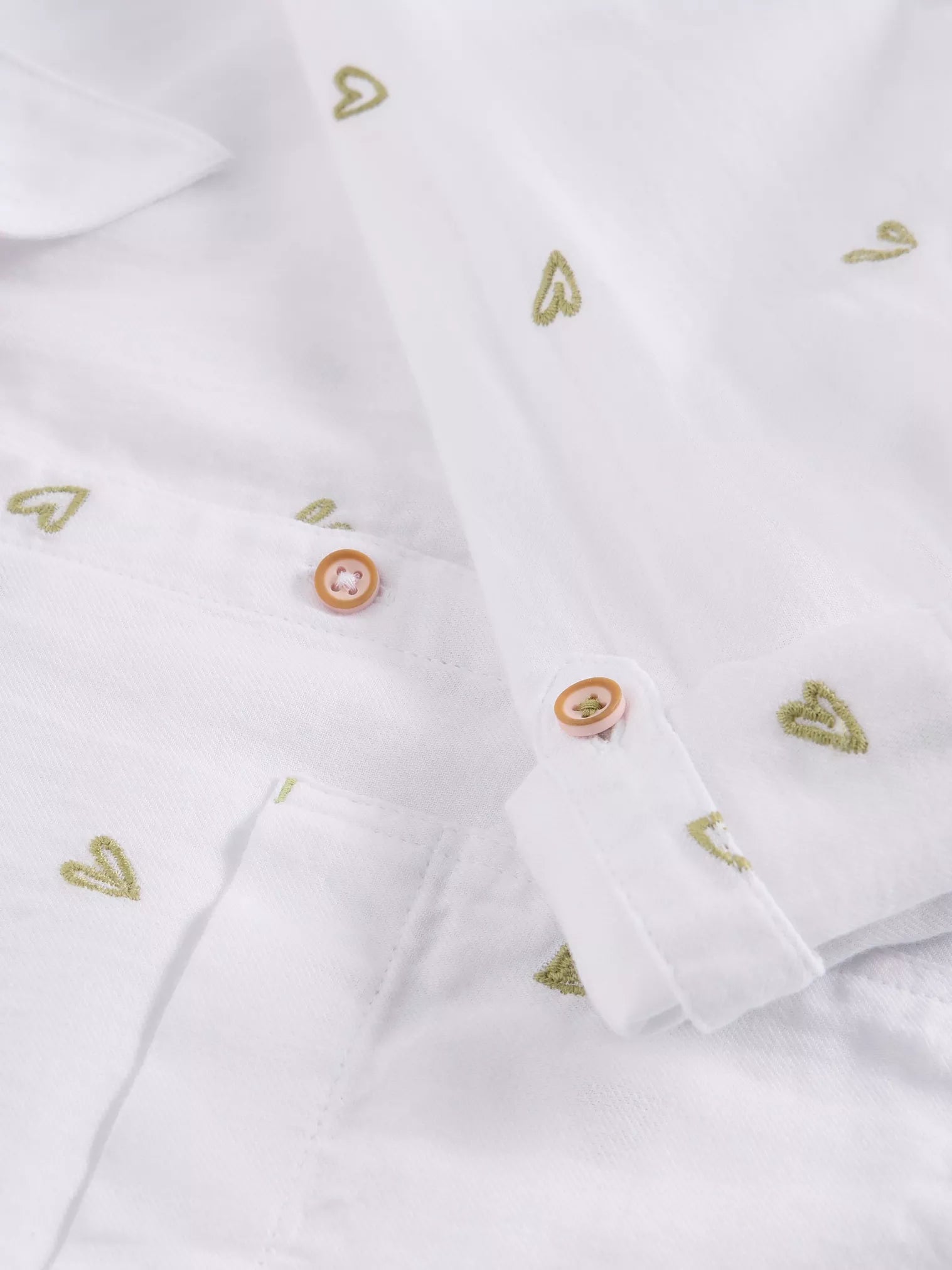 - IVORY MLT HEART EMB : Main: 100% Organic Cotton , Embroidery: 100% Polyester